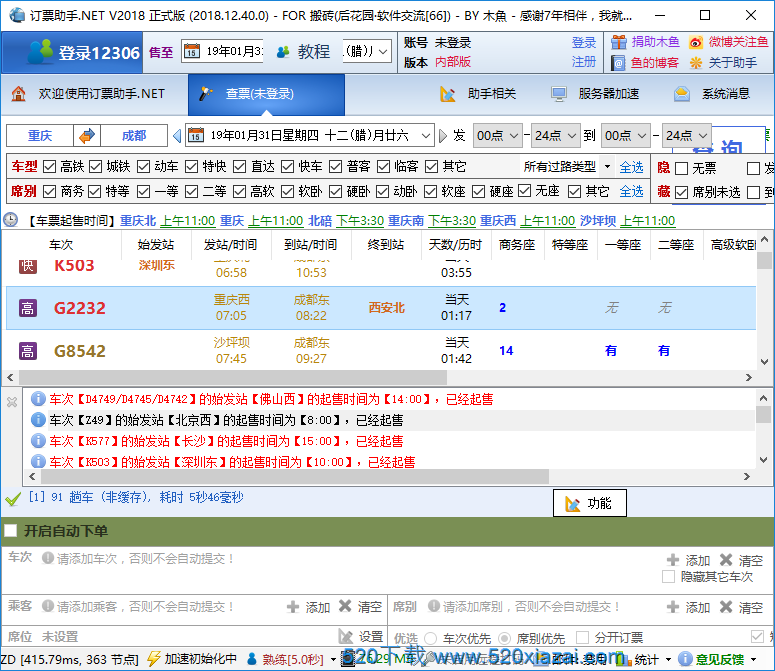 2、订票助手.NET设计的初衷,是一款完整工具、高质量操作体验的官网替代工具,让你不打开网站不经过复杂操作也可以顺利的完成买票的各项操作。